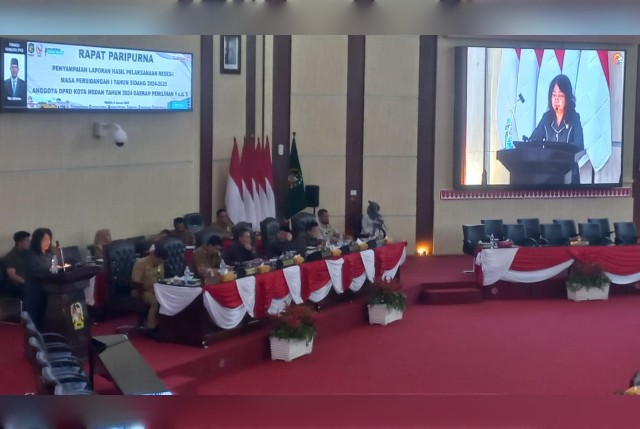 Legislator Dapil I minta banjir di Helvetia jadi perhatian Pemkot Medan itu disampaikan, Lily, saat menyampaikan hasil Reses 1 Masa Sidang 1 Tahun Sidang 2024-2025 Tahun Anggaran (TA) 2024 anggota DPRD Kota Medan dari Dapil Ipada sidang paripurna DPRD Kota Medan, Senin (6/1/2025).