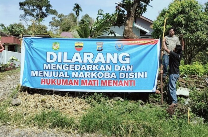Selain himbauan dilarang judi, kami juga memasang spanduk terkait peredaran narkoba, “Dilarang Mengedarkan Dan Menjual Narkoba Di Sini Hukuman Mati Menanti”.