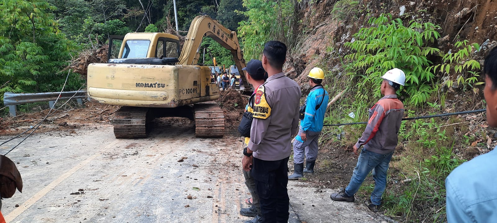 Kabid Humas Polda Aceh Kombes Joko Krisdiyanto menyampaikan apresiasi kepada personel Polsek Beutong Polres Nagan Raya yang sigap dan cepat membersihkan jalan yang terkena longsor di jalan lintas Meulaboh-takengon.