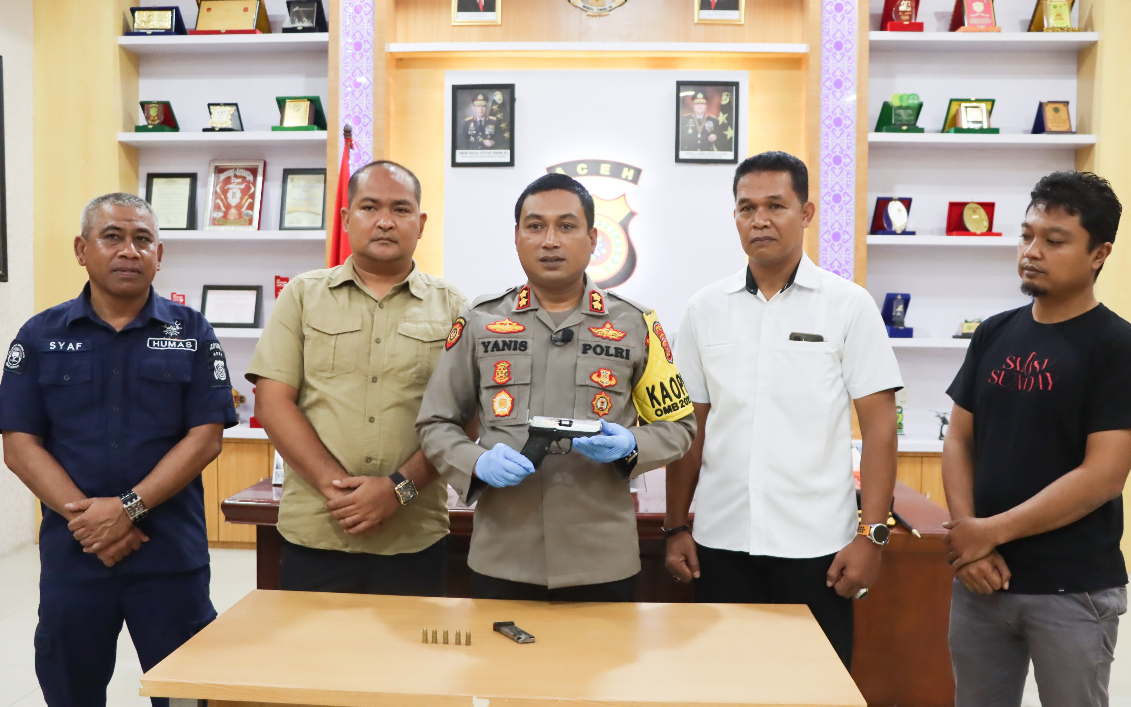KUALA SIMPANG – Personel Polres Aceh Tamiang kembali menerima satu pucuk senjata api rakitan jenis pistol, satu unit magazine, serta lima butir amunisi yang diserahkan secara sukarela oleh masyarakat.