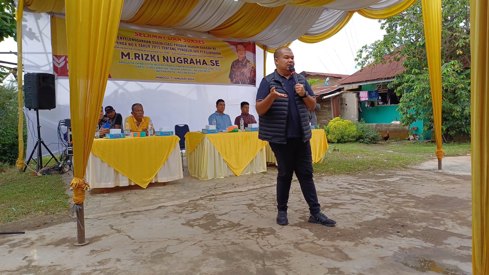 Hal itu diungkapkan Anggota DPRD Kota Medan Fraksi Partai Golkar, M. Rizki Nugraha SE saat menggelar Sosialisasi Produk Hukum Daerah Kota Medan No.6 Tahun 2015 tentang Pengelolaan Persampahan di Jalan Sumber Bangun Lingkungan II, Kelurahan Harjosari II, Kecamatan Medan Amplas, Minggu (7/1/2024) sore.