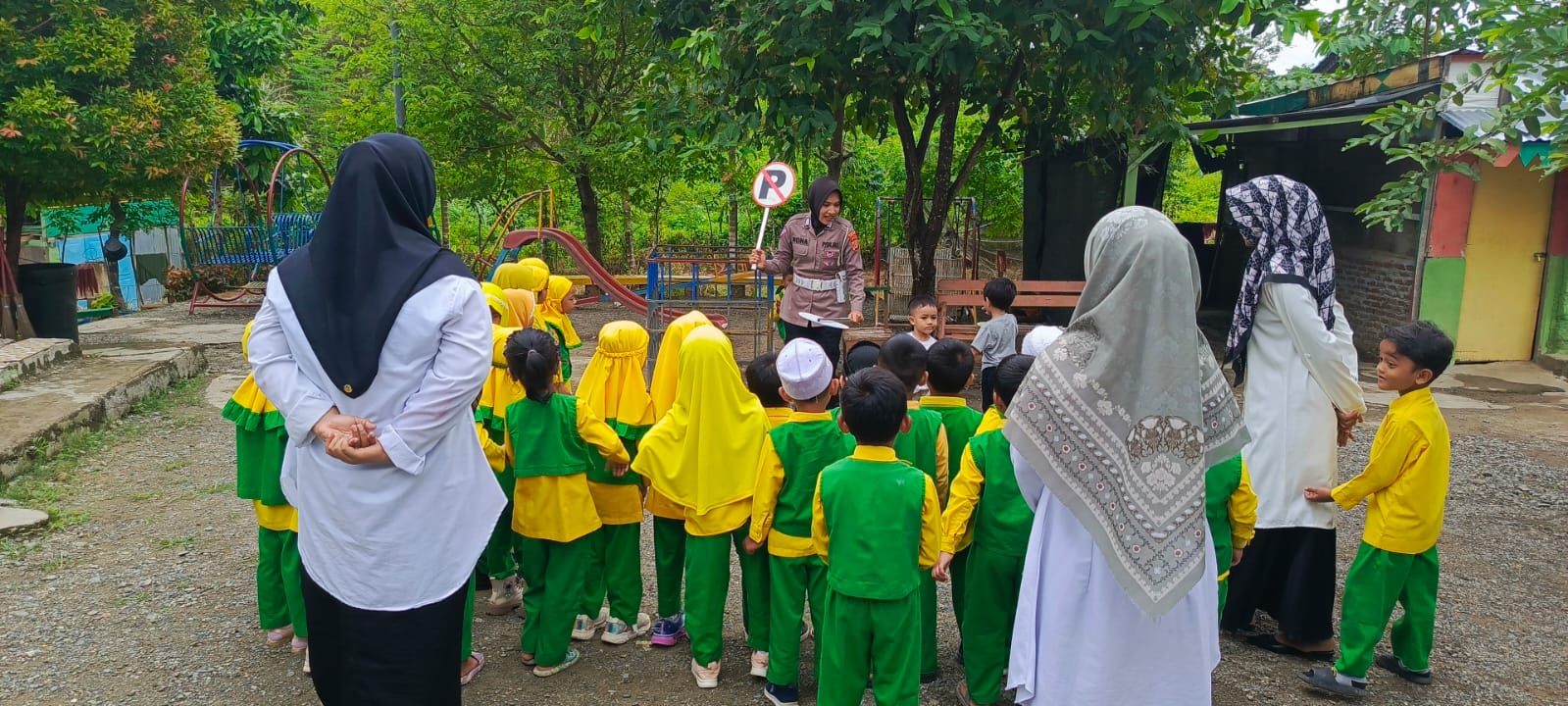 Dalam hal ini Satlantas Polres Aceh Besar menggelar Program Polisi Sahabat Anak bersama dengan anak-anak Tk Miftahul Huda Kota Jantho, Senin (20/05/2024).