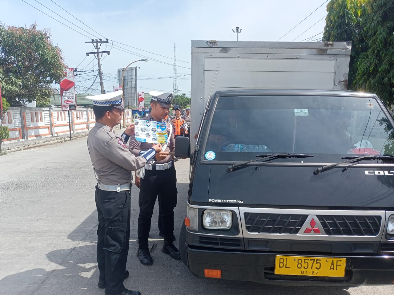 Adapun kendaraan yang menjadi penindakan yakni kendaraan Truck Overload atau melebihi kapasitas, Pengendara Sepeda Motor yang tidak menggunakan Helm, dan Kendaraan Roda 2 yang tidak sesuai dengan standarnya.