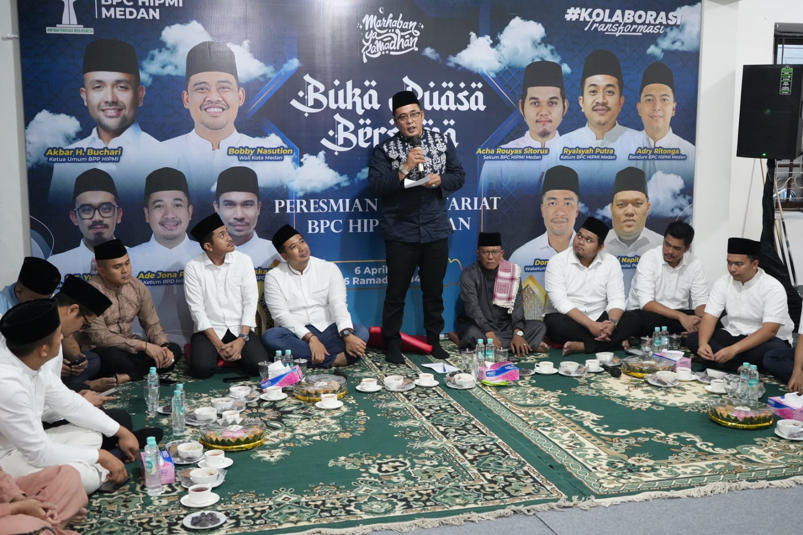 Harapan tersebut disampaikan Aulia Rachman saat mewakili Wali Kota Medan, Bobby Nasution dalam acara peresmian Sekretariat HIPMI Medan sekaligus dirangkaikan dengan buka puasa bersama yang diadakan di Komplek Tasbi 1, jalan Cassia Raya, Sabtu (6/4).