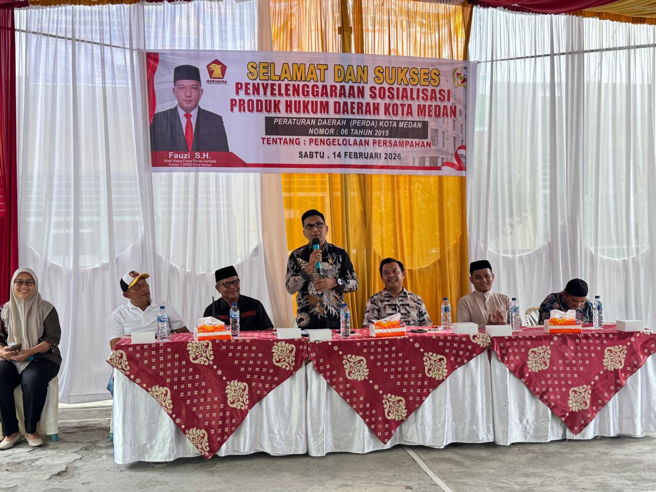 MEDAN – Narkoba dan keamanan menjadi keluhan yang disampaikan warga saat hadir dalam Sosper Nomor: 6 Tahun 2015 tentang Pengelolaan Sampah yang digelar Wakil Ketua Fraksi Gerindra DPRD Kota Medan, Fauzi SH, di Jalan Gedung Arca Gang Persatuan, Kecamatan Medan Area, Sabtu (14/2/2026).